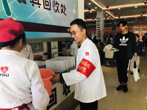 同时,志愿者们还加入食堂后勤,协助食堂员工进行打汤、收拾餐盘、清洁餐桌等工作。重复性的事务让志愿者们感受到食堂工作人员的辛苦,纷纷表示要把握当下,懂得感恩。