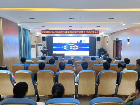 在化工大楼610报告厅召开2022年本硕连读实验班学生选拔工作动员宣讲会。院党委副书记许守飞、副院长张华丽及2019级本科生参加了本次宣讲会。