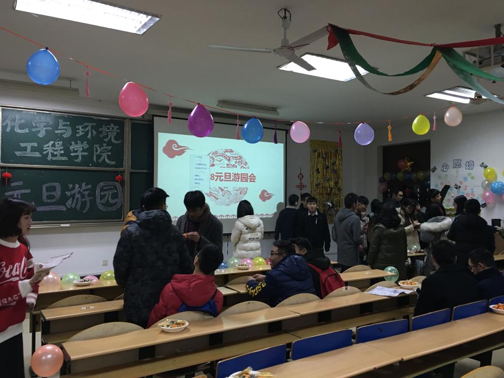 化环学师生携手共庆2018年元旦 作者:发布时间:2018-01-02点击率: 本网讯(通讯员 陈思)12月29日晚,蜜桃直播 2018年元旦游园会在流芳校区L1103教室举行。学院党委副书记苏纯华、学院工会主席袁华以及学院学生工作办公室、专业教研室老师们来到同学们中间,师生欢聚一堂共度元旦庆祝新年。 活动现场准备了多彩的节目和各种游戏,师生一道在互动的过程中共话一年来的收获,共迎新年的到来,共同祝愿蜜桃直播 全体师生新年新气象、新年新篇章。