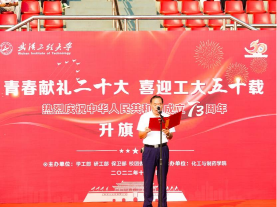 校党委副书记李志旭在仪式上致辞,向同学们宣扬红色精神,鼓励武工大莘莘学子赓续红色精神。他指出,作为工大的主人,要用实际行动热爱我们伟大的祖国,在全面建设社会主义现代化国家、实现第二个百年奋斗目标的新征程中,绽放出更加绚丽的青春光彩。
