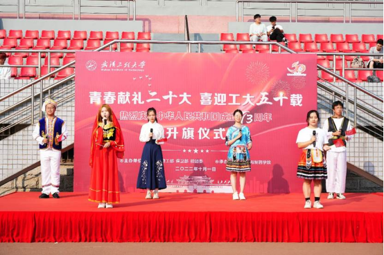在流芳校区田径场举办了“青春献礼党的、中共二十大 喜迎工大五十载”爱国主义教育升旗仪式。