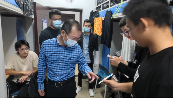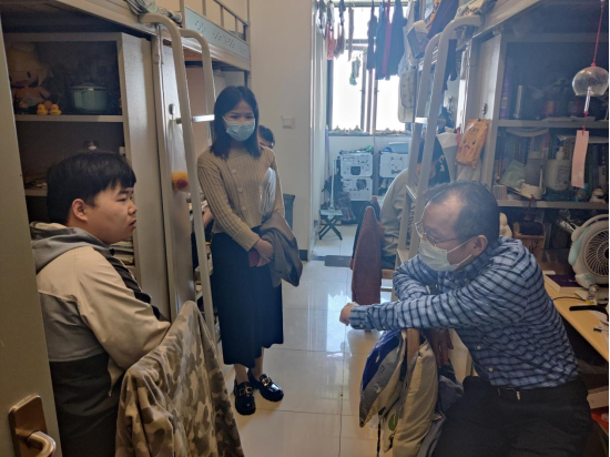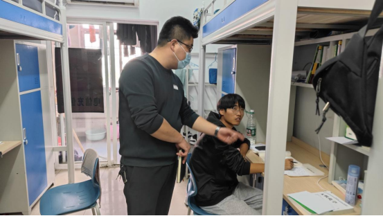 此次检查以年级为单位,张宗良一行到相应年级进行检查。本次检查主要针对宿舍安全和用电安全两方面,包括大功率电器的使用、插线板的摆放、床铺、书桌的整理以及个人日常核酸检测情况。