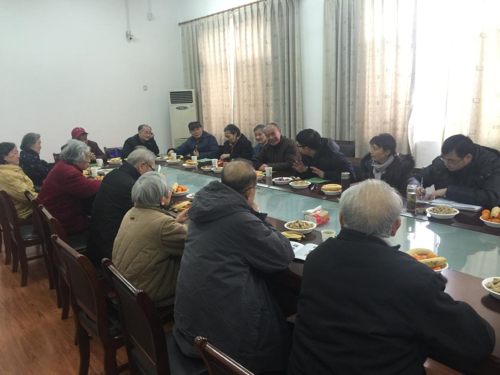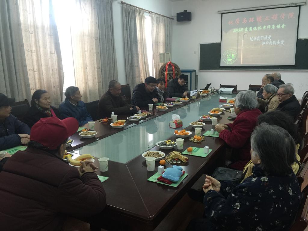 在会议室召开2015年度离退休老师座谈会。学院领导、化学与环境专业离退休老师、学院办公室主任、党务干事共计20余人参加了座谈会,会议由学院党委副书记苏纯华主持。