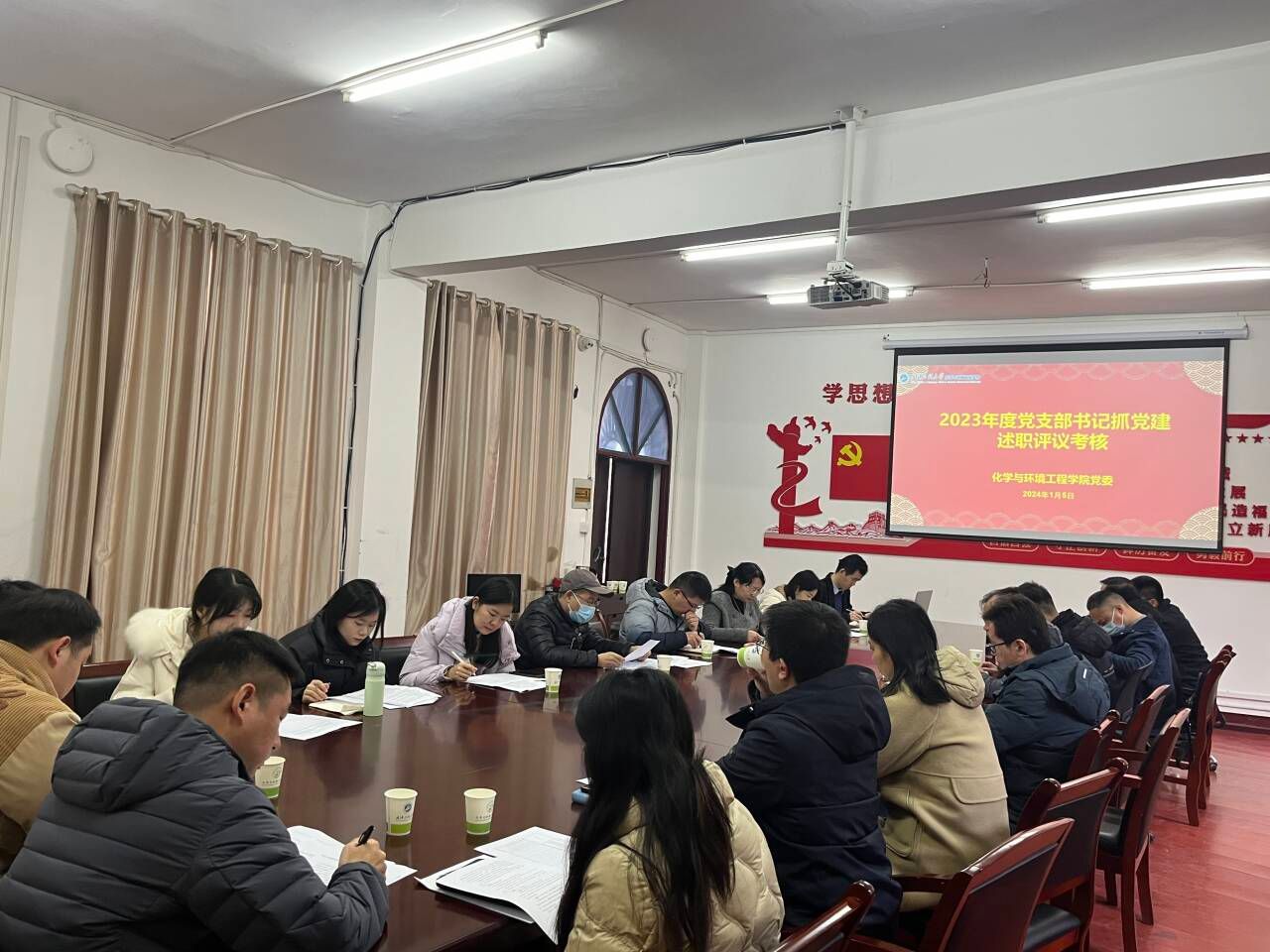 会上,6名教工党支部书记、9名学生党支部书记依次作述职汇报,重点围绕深入开展学习贯彻习近平新时代中国特色社会主义思想主题教育和学习贯彻党的二十大精神、支部组织建设、党建引领作用、党员教育与管理、党风廉政建设等方面,全面报告了2023年支部党建工作情况,存在的主要问题及原因和下一步工作打算。