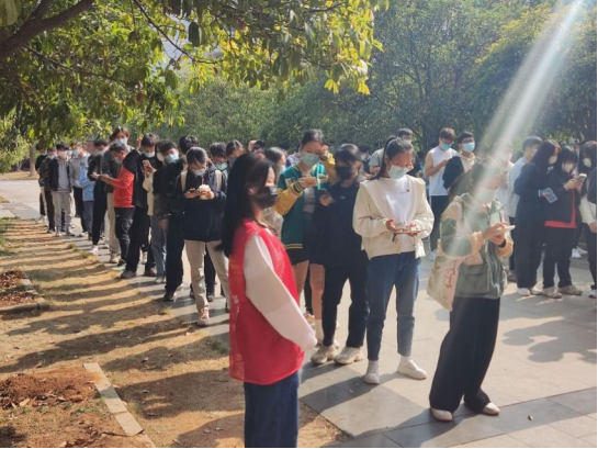 11月12日,学院分党校以“我为群众办实事”为主题,组织第70期入党积极分子和第12期发展对象培训班学员开展实践锻炼,参与学校核酸检测志愿服务工作,在实践中感悟中国共产党的为民初心。