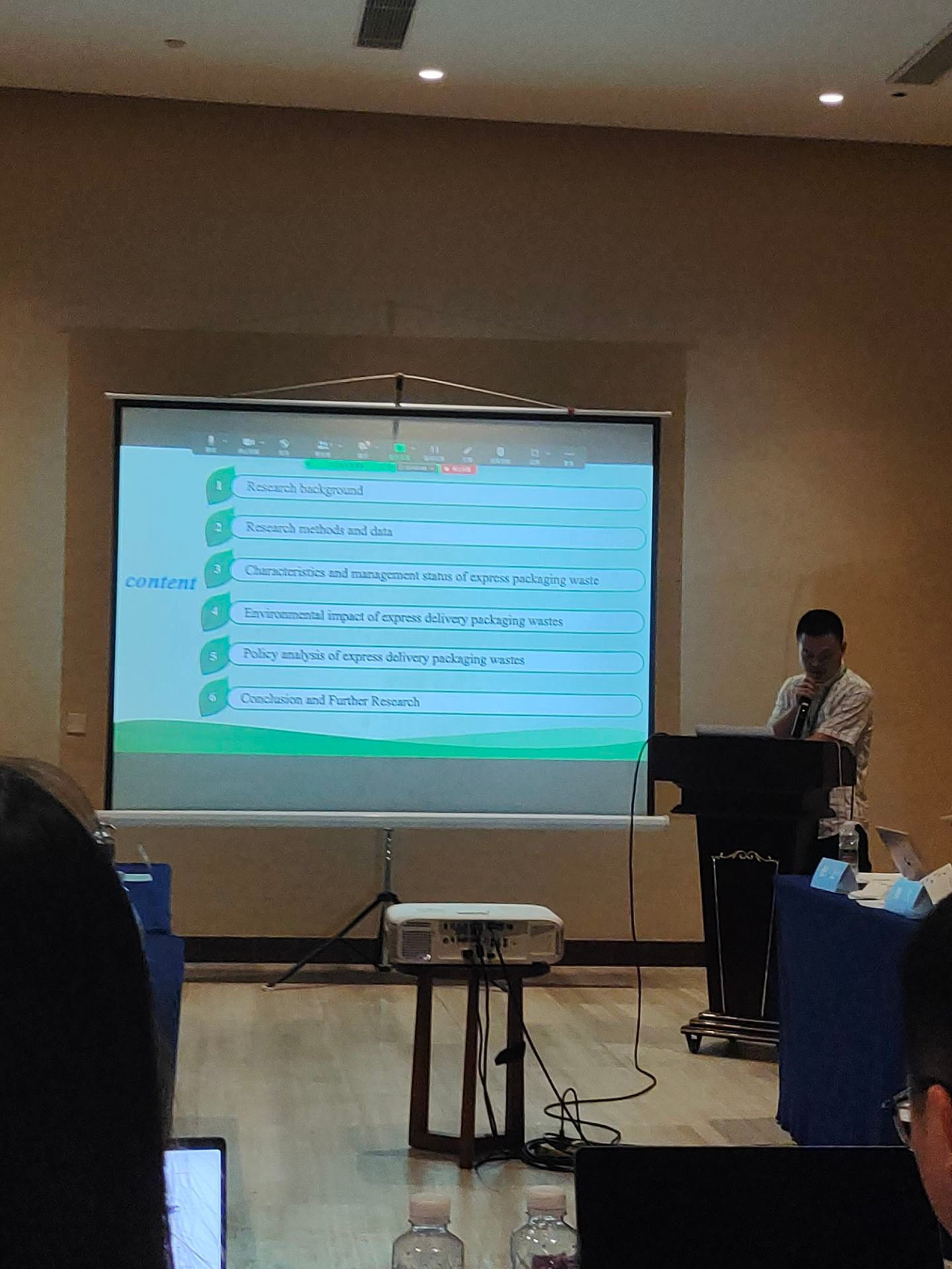 环工专业22级研究生陈金鹏全程用英文在研究生会议专场作了题为“Characterizing the generation and environmental consequence of express delivery packaging materials/wastes from university students in China”的学术报告。学生论坛由联合国环境署与清华大学/巴塞尔公约亚太区域中心联合组织,旨在为全球性废物管理问题提供一个良好的平台,有助于实现可持续发展目标和绿色未来。本次论坛是“第十八届固体废物管理与技术国际会议”的重要组成部分,以“减污降碳协同推进”为主题,邀请了国内外高校研究生同学就固体废物、化学品和循环经济等领域的热点问题做报告和专题讨论。学生论坛由来自联合国环境规划署官员日本的Shnichi Honda(本多俊一)先生做开幕致词,由来自清华大学、澳门科技大学、同济大学、浙江大学等知名高校的研究生代表和老师们参与并做学术交流,由巴塞尔公约亚太区域中心执行主任及清华大学环境学院李金惠教授做总结致辞。陈金鹏同学熟练地运用英文向在场的专家和学者介绍了我国校园快递包装废弃物的产生、流向特征及环境影响,以及美丽中国---“双碳”背景下的“减碳”情景及路径研究。汇报内容引起了相关入会专家和学者的兴趣,陈金鹏同学全程(用英文从容地与在场学者进行了交流和讨论(共计15分钟),并就数据的分析和研究结果等相关问题进行了进一步深入交流和讨论。