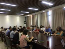 院长助理张华丽就此次活动的目的及意义进行说明,同时介绍了两位教授。会上,Sanja教授首先对曼彻斯特城市大学的地理位置及校园环境进行介绍,并分别介绍了本科生、硕士生的相关情况,强调学校拥有完善的硬件设施,可为每位学生提供动手操作的机会。Johannes教授就自己的研究方向及内容进行较为详细的介绍。接下来由毕业于香港城市大学、南洋理工大学以及加拿大西安大略大学的胡陈艳博士、崔晶晶博士及程璟博士分别就蜜桃直播