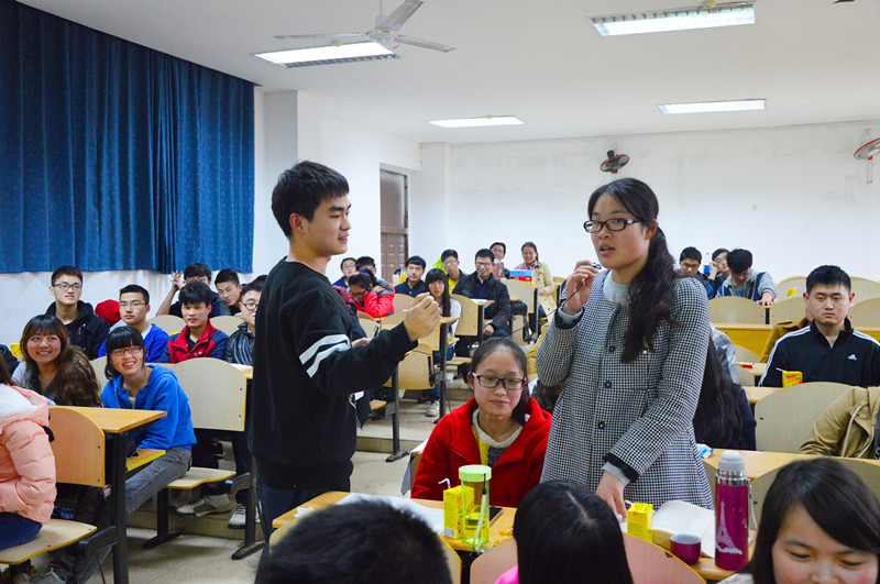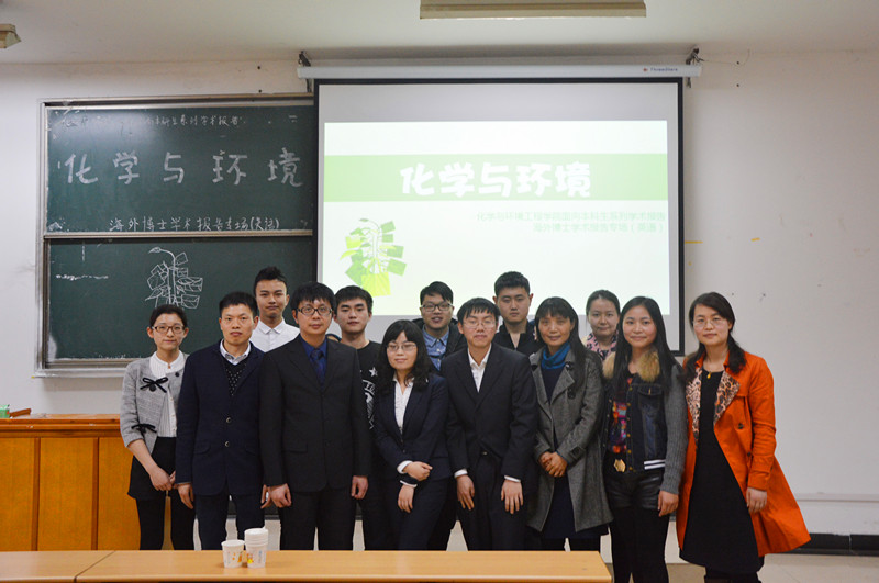“动·青春”系列活动之“化学与环境”海外博士学术报告专场(英语)在流芳校区L1107举行。院长陈嵘、党委书记刘汉红、党委副书记徐迪迪、邱心泓博士、程刚博士、程璟博士、邓黎丹博士、辅导员李琪娜和刘静以及学院2013级全体学生和部分其它年级学生参加了此次活动。本次学术报告分别由2013级的学生陈时斌、何斌卿、周丹、黄穷、季梦园和曾扬帆六位同学用英语主持。