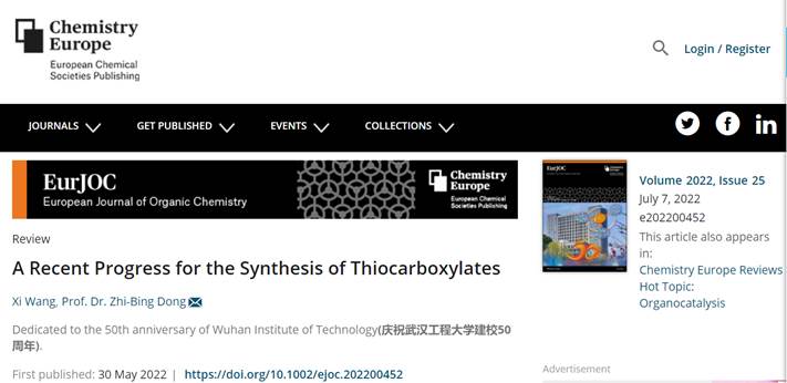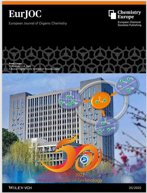 董志兵教授课题组在著名有机化学期刊European Journal of OrganicChemistry发表了题为“A Recent Progress for the Synthesis ofThiocarboxylates”(DOI: doi.org/10.1002/ejoc.202200452)的封面论文(第一作者:王曦,通讯作者:董志兵)。该期封面以学校大化工楼和学校50年校庆LOGO为背景,对近期硫酯类化合物的合成方法和应用进展进行了全面介绍,同时,该论文也是对该课题组近期在有机硫化学领域的思考和总结。该论文利用国际著名学术期刊为平台,积极推介蜜桃直播