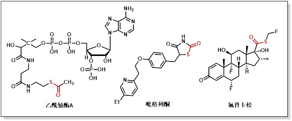硫酯(thiocarboxylate)是有机化合物中较为常见的单元,作为药物合成中的关键成分而广泛存在,例如生命体中能源物质代谢的重要中间产物乙酰辅酶A(acetyl-CoA)、用于胰岛素增敏剂的吡格列酮、用于缓解皮质激素的氟替卡松等。此外,由于硫原子的3p轨道和氧的2p轨道的轨道重叠较差,使得硫酯的共振结构不稳定。这让硫酯体现出更强的亲电性,因此容易受到亲核攻击,可官能性转化为一系列有用的酯、酰胺、硫醚等。