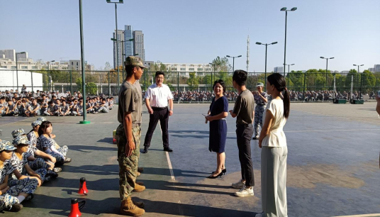 院长余军霞,党委副书记许守飞,副院长张华丽以及2022级辅导员李杨,何世凯前往军训现场亲切慰问了坚守在一线的军训教官和参训学生。