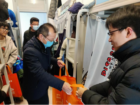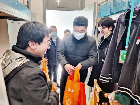 考研学生寝室进行慰问,为同学们加油鼓劲,并送上精心准备的“考研加油包”。