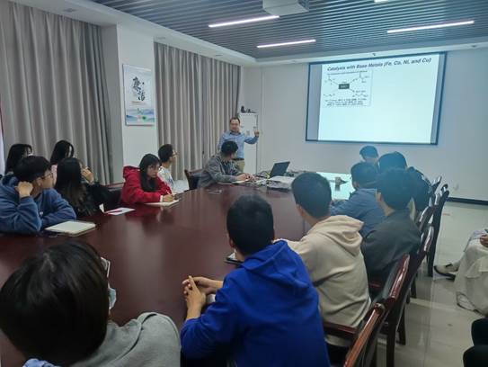 报告会中,葛少中教授以《钴催化的不饱和碳氢化合物的选择性多硼化反应》为题,详细讲述了其课题组以Co(acac)2和双膦配体Xantphos为催化剂,发展不饱和烯烃与HBpin的去氟硼化和不对称硼氢化反应。葛少中教授团队在研究廉价且无毒的丰产金属催化的不饱和烃硼氢化反应的过程中,发现了系列钴催化的烯烃二硼化和三硼化反应。这些二硼化、链行走双硼氢化和三硼化反应为合成多功能偕二硼基烷烃和1,1,3-三硼基烷烃提供了便利的途径。葛少中教授的报告内容新颖,讲解思路清晰,深入浅出,激起了在座老师和同学的浓厚兴趣。
