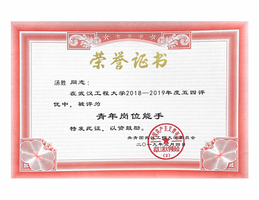 “优良学风班”。该班级不仅考研率高,班级同学大学四年加权平均分在2019级应用化学专业排名前20名中占比超过一半,在应用化学专业141人的四年总成绩排名中,王思、尹宇强、吴仁智、任思静同学囊括前五,获得了保研推免资格。