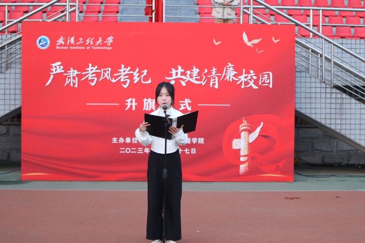 在田径场举办以“严肃考纪考风,共建清廉校园”主题升旗仪式,院党委书记张宗良、党委副书记许守飞、全体辅导员、2022级、2023级全体同学参加本次升旗仪式。