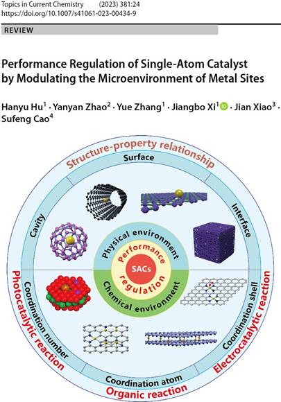 奚江波教授课题组在深入开展研究工作的同时,还密切关注本领域的研究进展。在中国“卓越行动计划”期刊Chinese Chemical Letters(影响因子为9.1)上发表了题为《Single-atom catalysis for organic reactions》的综述论文,综述了SACs的最新进展及其在有机反应(如氧化、还原、加成、偶联反应和其他有机反应)中的实际应用。在Topics in Current Chemistry期刊(影响因子8.6)上发表了题为《Performance regulation of single‑atom catalyst by modulating the microenvironment of metal sites》的综述论文,全面总结了在化学反应中单原子催化的过程-结构-性能关系,SACs的活性位点、配位结构和性能调节策略的研究进展。在上述综述中,作者对SAC的发展现状、发展趋势、未来挑战和前景进行了深入讨论。