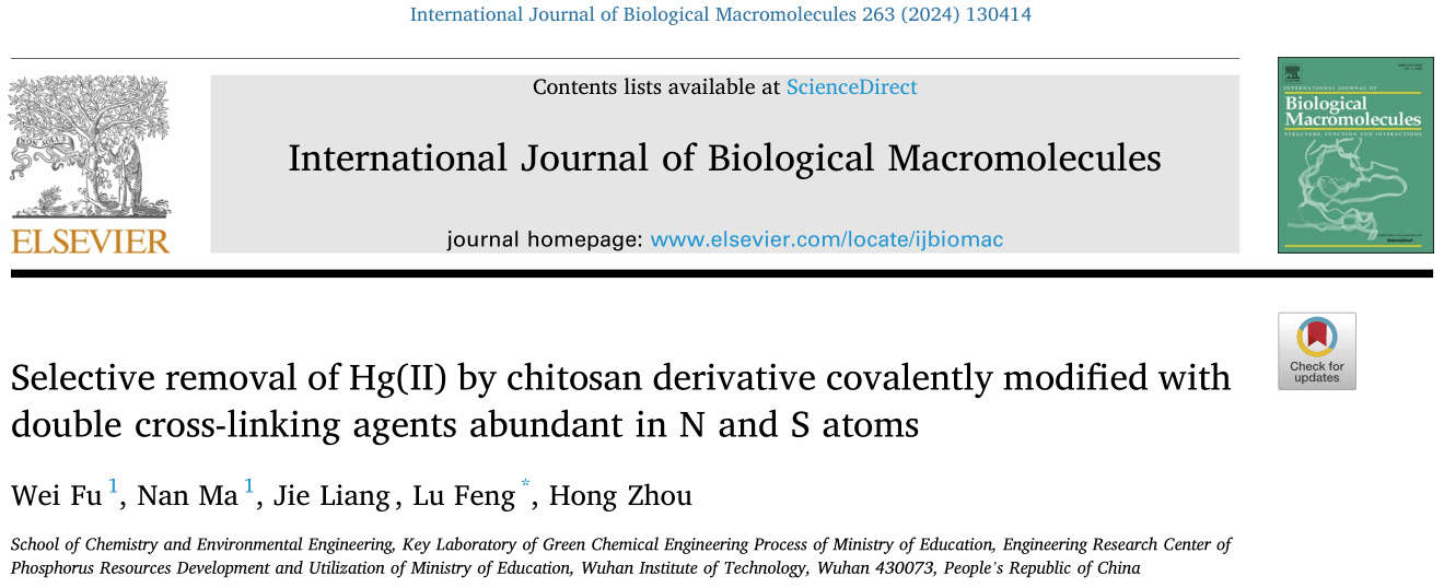 环境工程专业2021级本科生付玮以第一作者在国际知名期刊《International Journal of Biological Macromolecules》(中科院一区Top期刊,影响因子8.2)发表了题为《Selective removal of Hg(II) by chitosan derivative covalently modified with double cross-linking agents abundant in N and S atoms》的学术论文。蜜桃直播