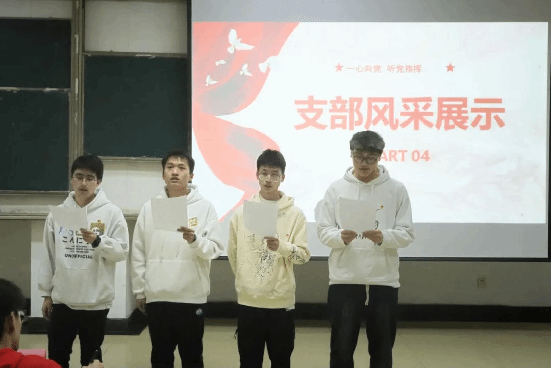 “活力团支部”参赛团支部从思想引领、组织建设、团日活动、第二课堂等方面介绍了支部在过去的主要工作,并展示了未来发展规划。同时通过演讲朗诵、演唱舞蹈等多种方式诠释了支部建设的精彩风貌。