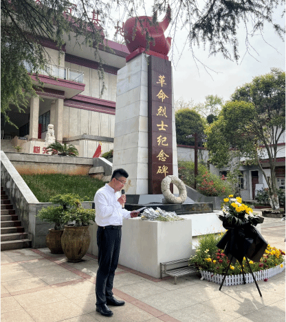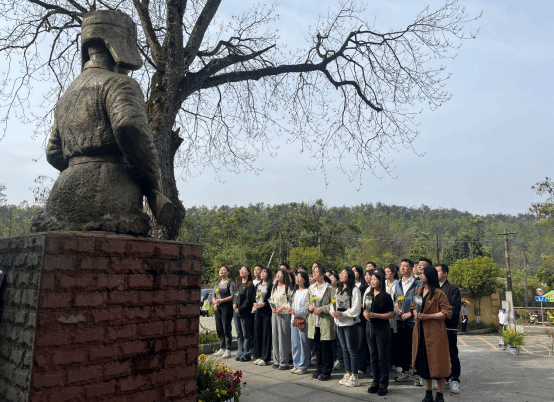 抵达陵园后,师生们首先向烈士纪念碑敬献花篮,随后全体党员肃立默哀,表达对革命先烈的深切缅怀和崇高敬意。在庄严的仪式中,师生们重温入党誓词,坚定理想信念,铭记历史使命。