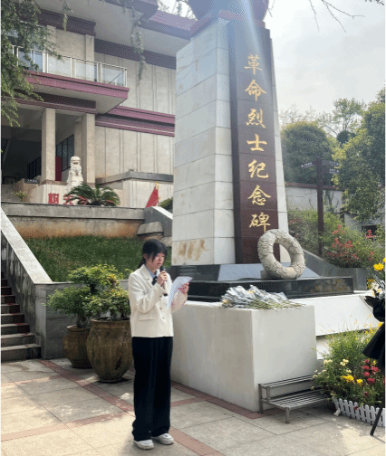 徐贤媛作为学生党员代表发言,号召同学们要以先烈为榜样,学习他们坚定的理想信念、无畏的牺牲精神和崇高的道德品质。要将个人的梦想与国家的梦想紧密结合,用实际行动为祖国的繁荣富强贡献自己的力量。