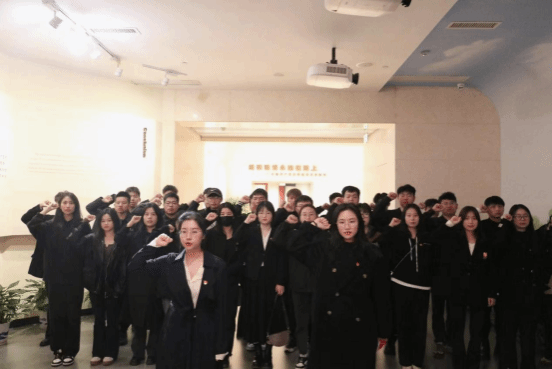 研究生团委指导老师李茜领誓。在庄严肃穆的革命烈士雕像前,骨干们面对党旗庄严宣誓,用铿锵洪亮的誓言,表达了对党无限忠诚、矢志不渝的理想信念和担当奉献的决心意志。