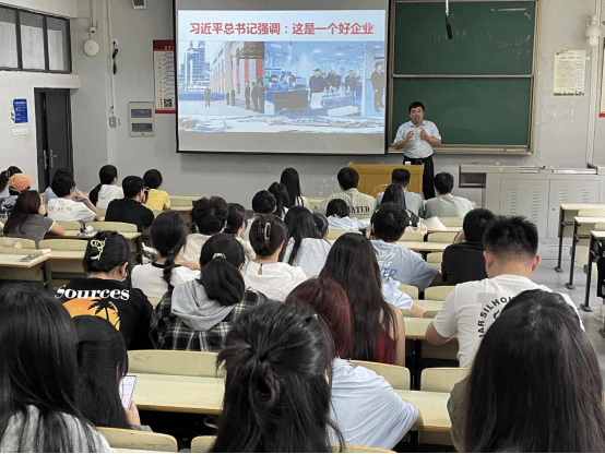 随后,陈水结合九江石化的宣传片,分别从公司产品、公司文化、公司业绩、公司荣誉和公司未来发展计划五个部分向同学们进行了详细介绍,并现场解答同学们对入职要求、薪资福利等疑问,他希望通过此次讲座能给毕业生的就业带来一个新的选择,同时也欢迎各位同学加入九江石化。