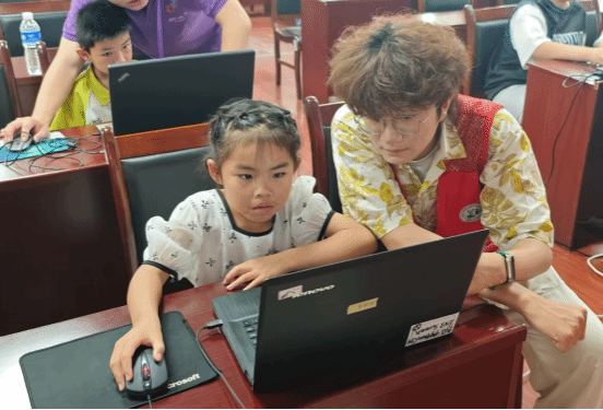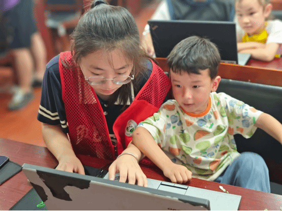 活动中,志愿者们为小朋友们科普编程的主要概念和基础知识。通过通俗易懂的语言和形象生动的例子,孩子们快速对编程产生兴趣。同时,为进一步加强小朋友实践动手能力,志愿者在台下点对点手把手地教小朋友们进行编程操作,真正实现了1v1教学科普,确保每一位小朋友都能得到充分的指导和帮助。