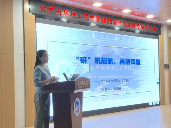 随后,张华丽结合学院的独特优势,为同学们绘制了一幅幅充满希望的未来图景。她从学院学位点建设、研究生导师、学术交流以及研究生培养质量等方面进行宣讲。她提醒大家备考时要合理规划,注意计划安排与时间投入,希望大家能够坚持不懈、团队合作和合理择校,积极向专业老师寻求指导和帮助,享受考研路上的收获。同时,她鼓励同学们报考本校,与师生携手共进,共同为学院的发展贡献力量。