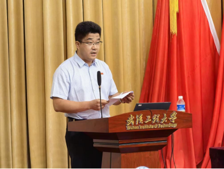 有机化学教师袁华教授讲话,告诉同学们教育不仅是知识与技能的传授,更重要的是培养学生的创造力、思维能力与社会责任感。他给全体新同学提出三个努力的方向:努力做一个对国家社会有用的人,有理想、有追求;努力做一个学院学校引以为傲的人,有品质、有修养;努力做一个自己无悔、父母有光的人,有担当、有作为。
