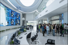 到达实习现场,师生们首先进入园区智慧化管控中心,了解整个园区的建设及运营情况,通过智能系统观察各项目处理单元的实际生产过程及运行参数,亲自体验3D生产场景,理解了园区物料循环原理。