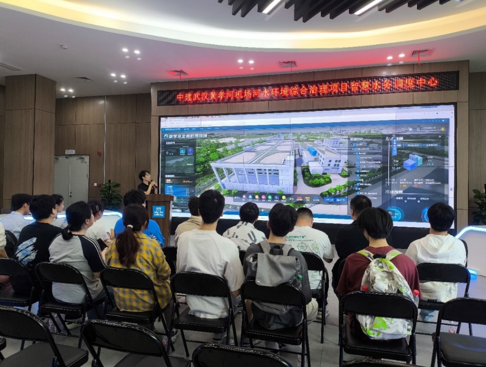 2021级环境工程专业17名学生来到中建武汉黄孝河机场河水环境综合治理建设运营有限公司,参观铁路桥地下花园式污水净化厂和智慧水务调度中心。