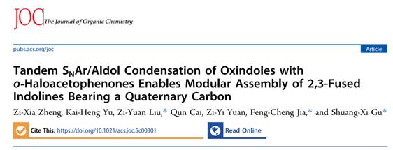 应用化学专业 2022 级本科生郑子侠、喻恺恒(分别以第一、第二作者身份)在有机化学领域国际学术期刊 《The Journal of Organic Chemistry》(中科院二区top)上发表一篇题为“Tandem SNAr/Aldol condensation of oxindoles with o-haloacetophenones enables modular assembly of 2,3-fused indolines bearing a quaternary carbon” 的学术论文,蜜桃直播