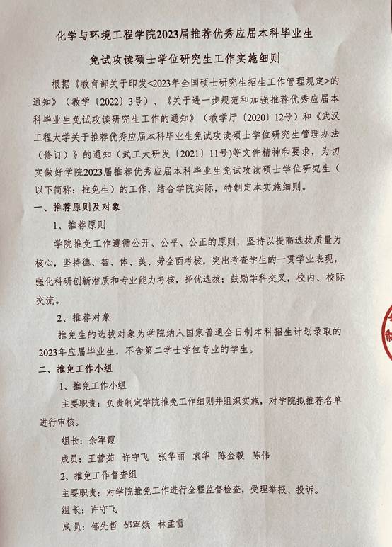 蜜桃直播 2023届推荐优秀应届本科毕业生免试攻读硕士学位研究生工作实施细则