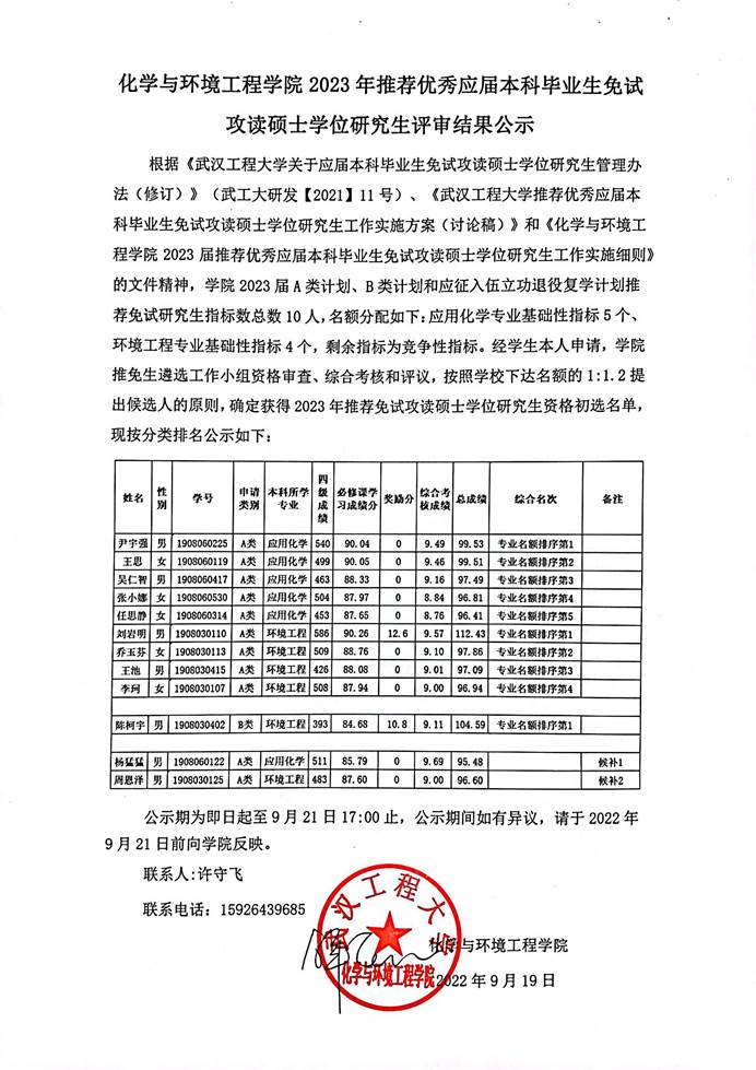 蜜桃直播 2023年推荐优秀应届本科毕业生免试攻读硕士学位研究生评审结果公示 作者:发布时间:2022-09-19点击率: 附件【湖北赛区组委会4号通知-陈柯宇互联网+大赛省级铜奖.pdf】已下载次 附件【附表1 蜜桃直播 优秀应届本科毕业生免试攻读硕士研究生申请表-陈柯宇.pdf】已下载次 附件【全国大学生生命科学竞赛(2022,创新创业类)一等奖-陈柯宇.jpg】已下载次
