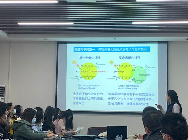 相关师生分别做了题为《燃料电池电催化材料的结构设计和性能调控》、《多孔复合光催化体系》的学术报告,报告会由蜜桃直播