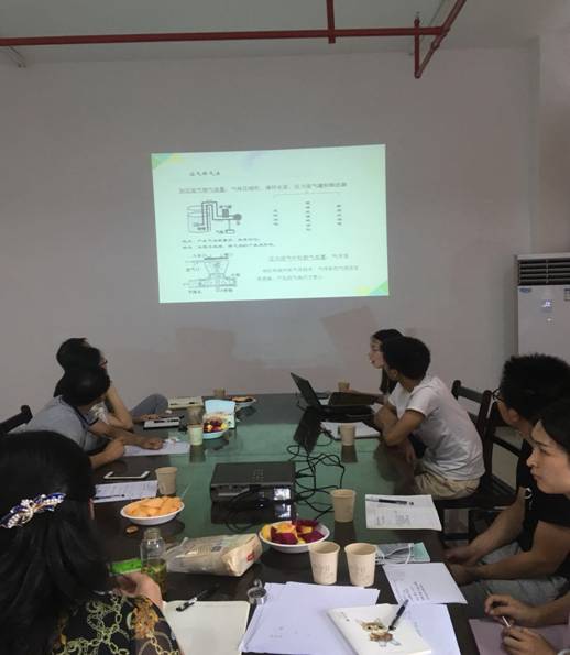 研究生杨彬和徐萍同学分别就臭氧新型催化剂的制备及反应器的设计做了报告。杨彬同学详细介绍了臭氧新型催化剂的制备及应用效果,徐萍同学分析了各类常用反应器的优缺点,在进行分析对比之后提出了将高效布气及传质技术应用于臭氧催化反应器中,可以增大传质效率,增加羟基自由基的产量,对于污染物的降解有着很好的效果。杨总、彭总听取汇报后对项目组成员所做的工作给予了充分肯定,并提出了一些建设性意见,由于臭氧具有强腐蚀性,应从反应器的材质、结构等方面进行综合考虑,设计出更好的反应器。