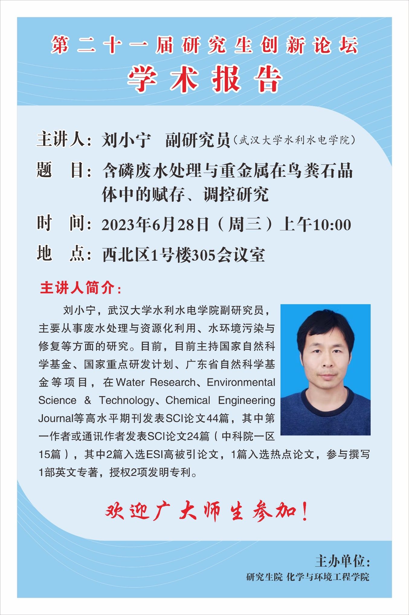【第二十一届研究生创新论坛学术报告】含磷废水处理与重金属在鸟粪石晶体中的赋存、调控研究