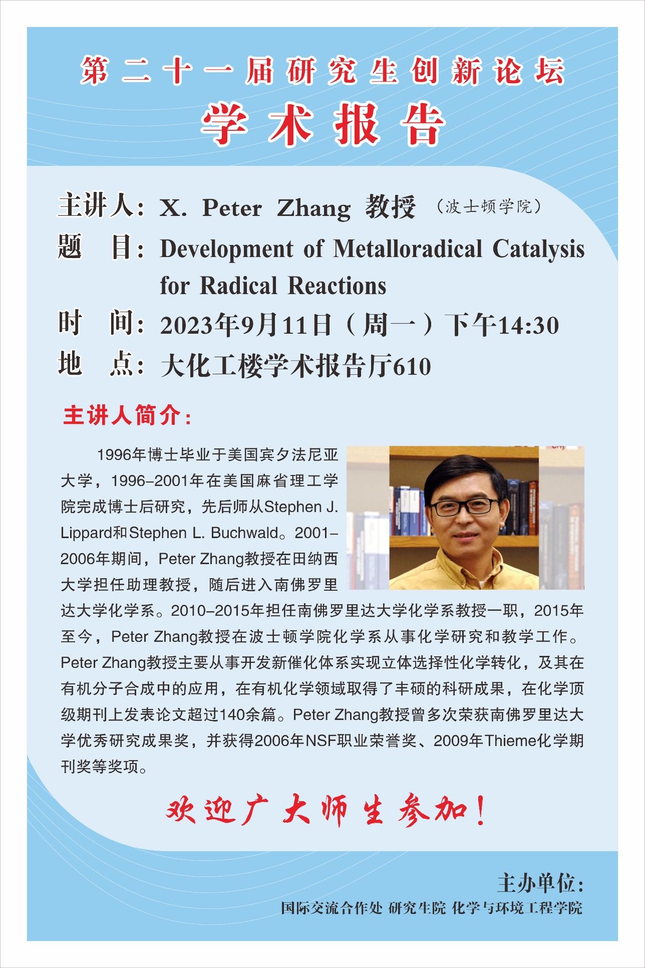 【第二十一届研究生创新学术论坛】Development of Metalloradical Catalysis for Radical Reactions
